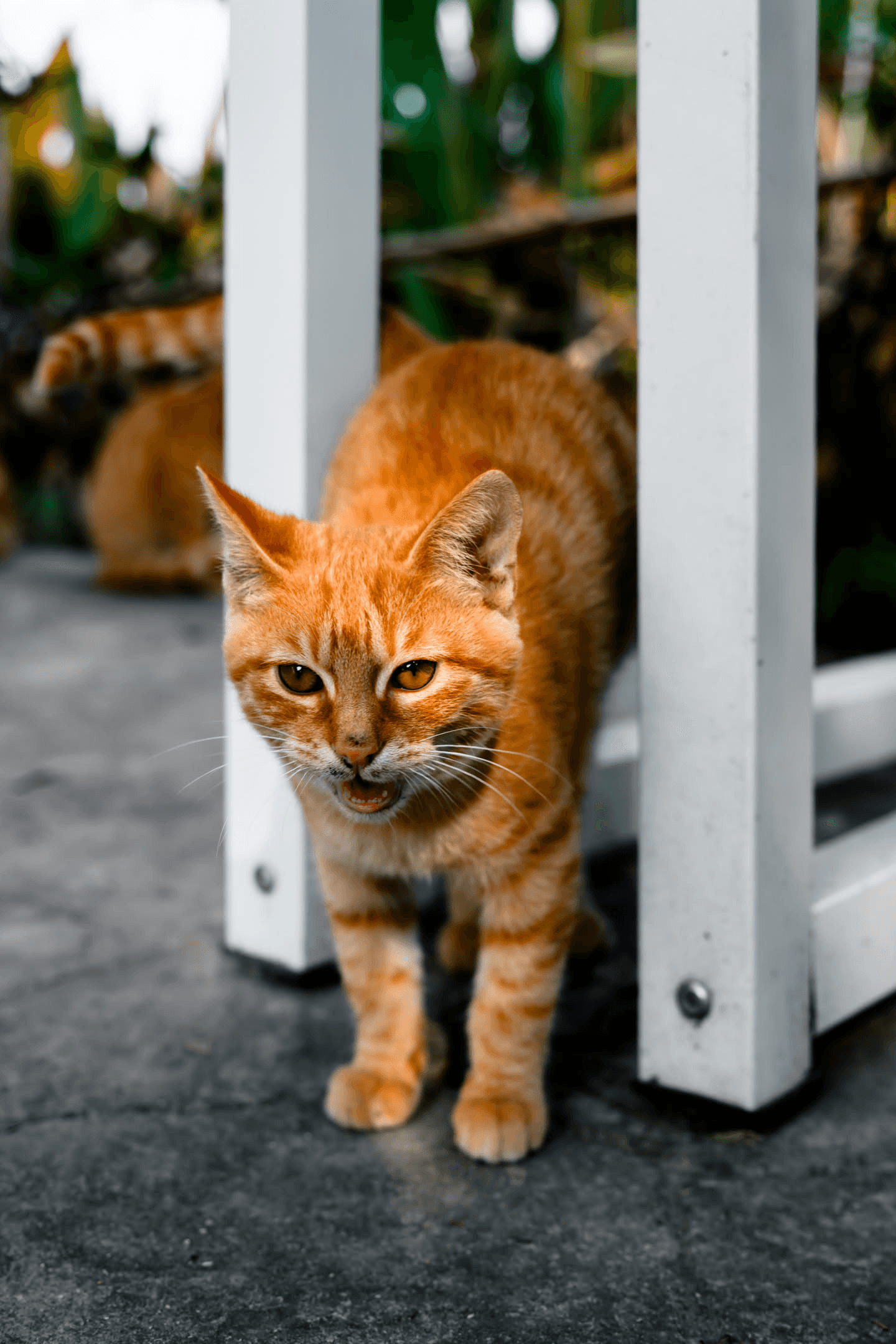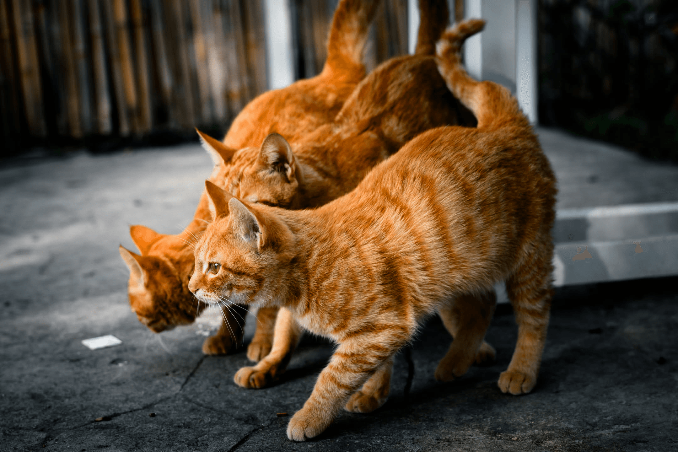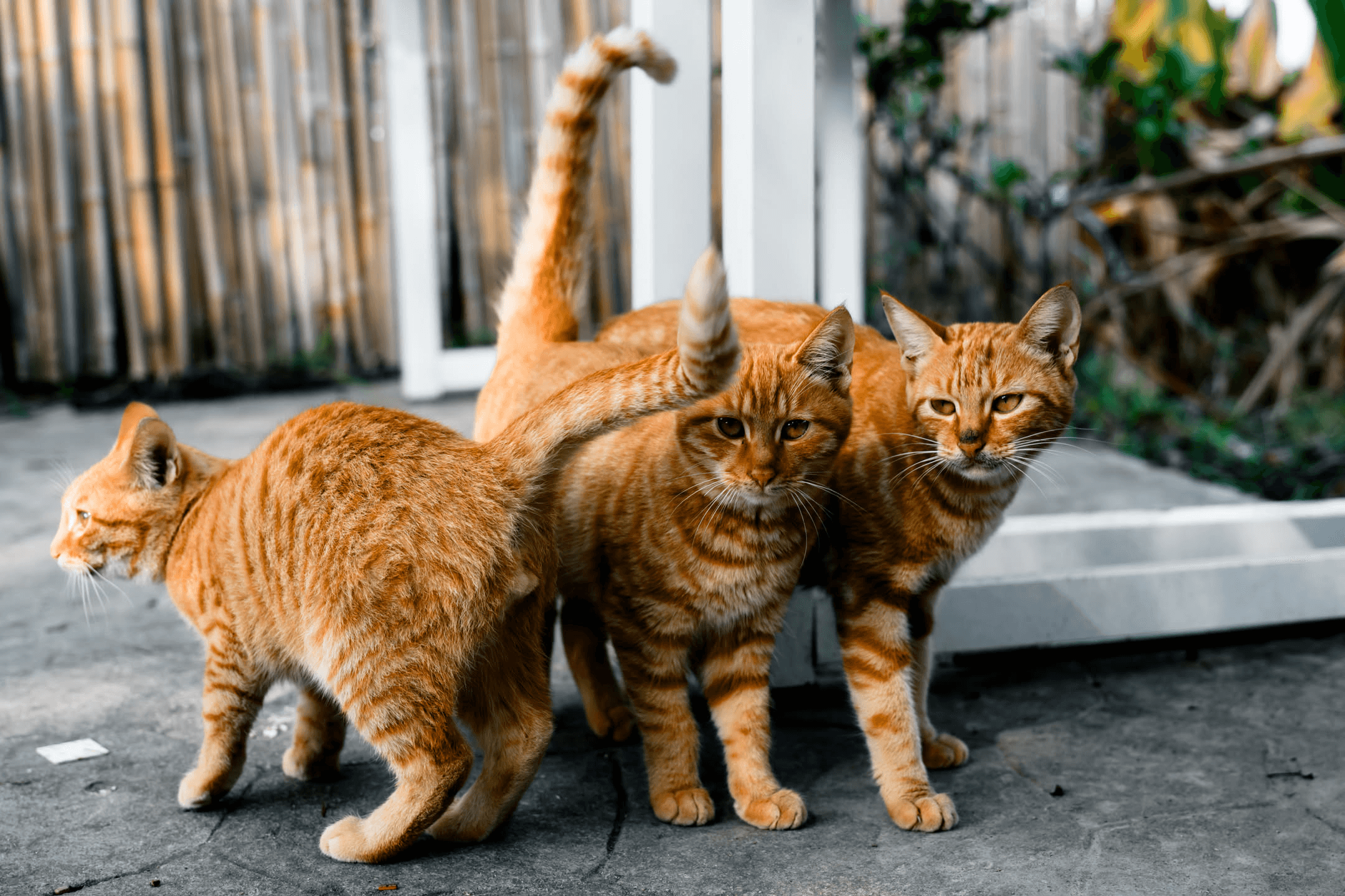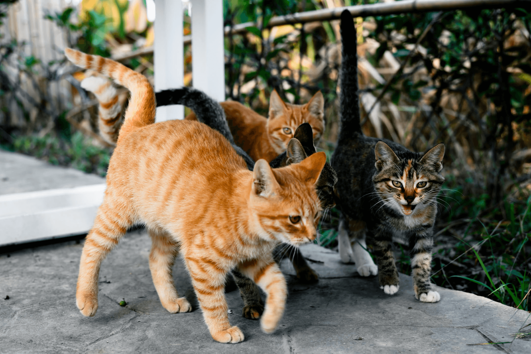 三只橘猫和两只狸花组成的猫咪家族。